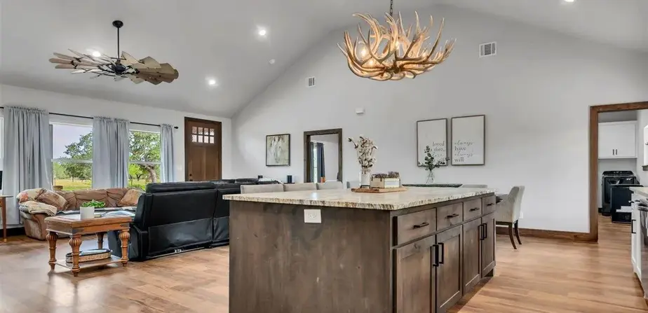 Experience serene country living in this cozy, energy-efficient farm-style home, just 1520 minutes from Jacksboro and Graham. The open-concept floor plan features vaulted ceilings and a stone fireplace, perfect for winter gatherings. With a split-bedroom layout, the primary suite offers added privacy. Enjoy 10 fully fenced acres with a gated entry, ideal for outdoor relaxation. This peaceful retreat is a rare findschedule your showing today!
